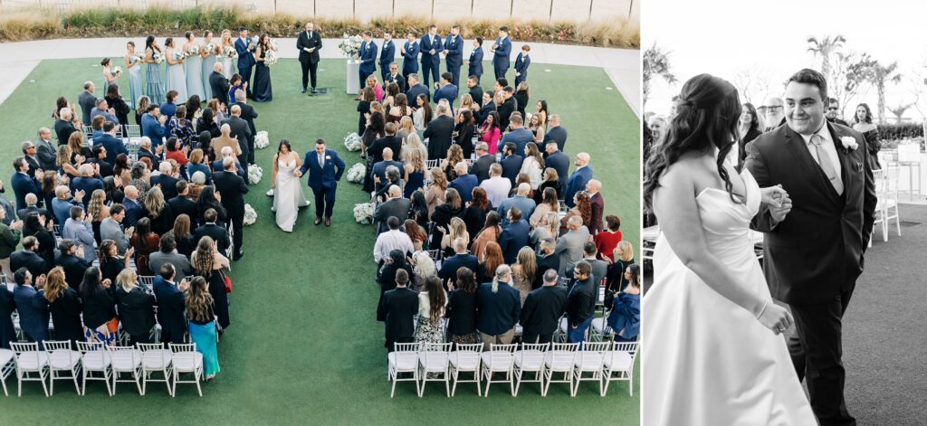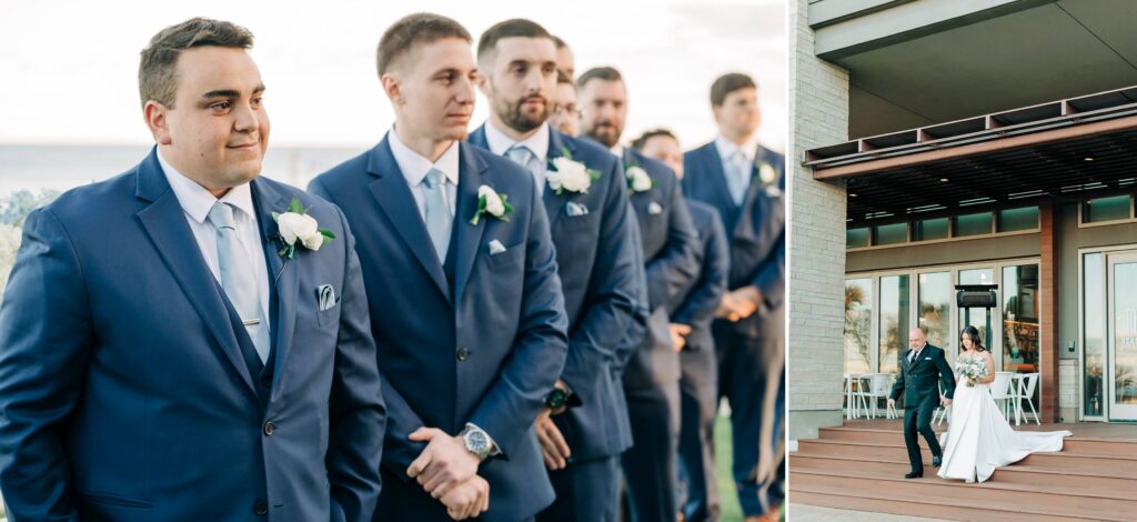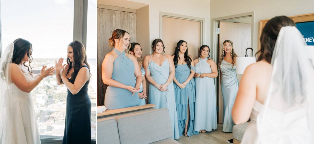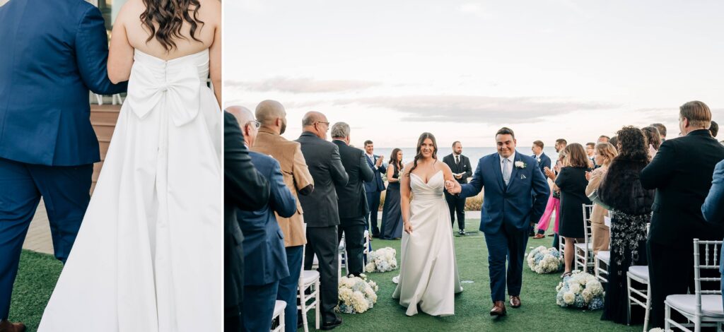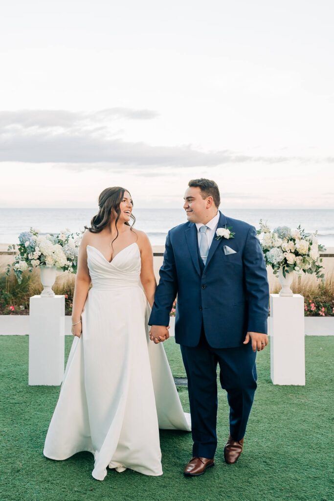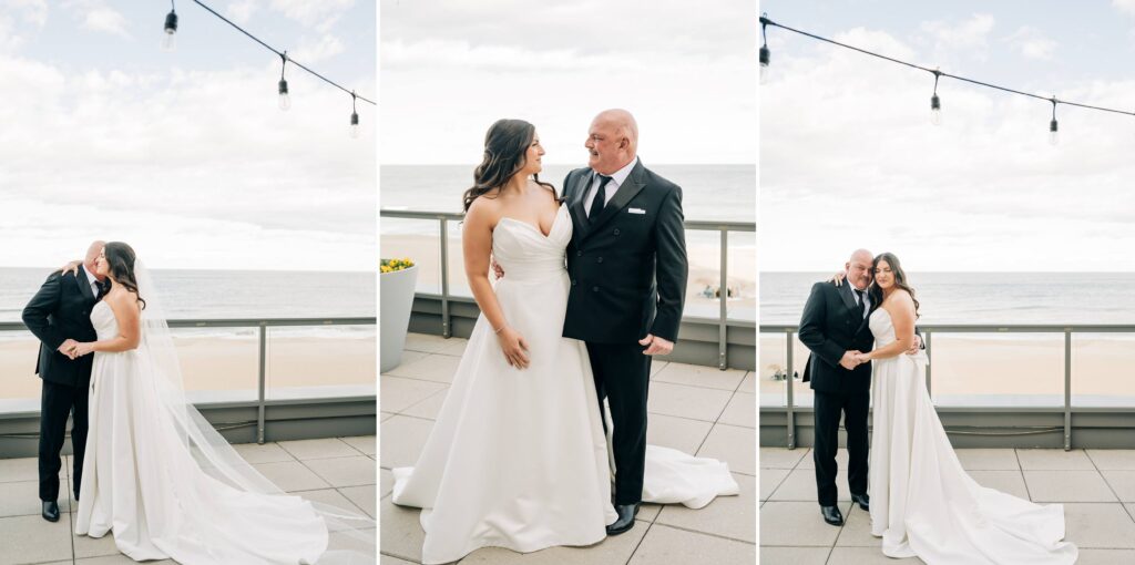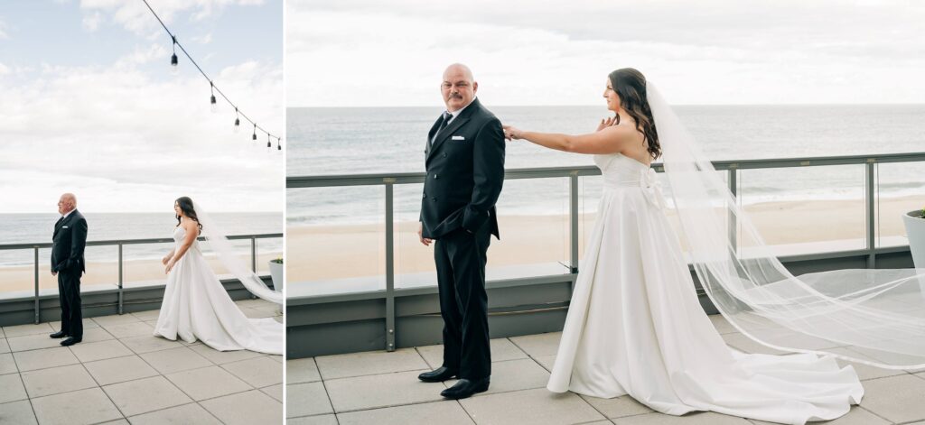 This incredibly gorgeous (and warm!!) Fall Wedding at The Marriott started with beautiful ocean views while Lily & Ephram got ready with their closest people. Lily shared a special first look with her dad before it was time for the ceremony.