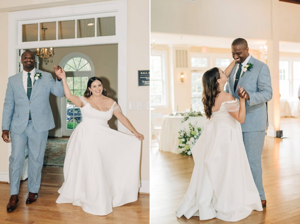 One of the standout features of the Women’s Club of Portsmouth is how effortlessly it accommodates a rain plan. While Ashley and Darian were lucky enough to enjoy beautiful weather, the indoor space offers an equally stunning backdrop that can be customized to fit any wedding vision. The natural light, elegant details, and flexible layout make it easy for couples to design a space that feels uniquely theirs, no matter what the forecast brings.