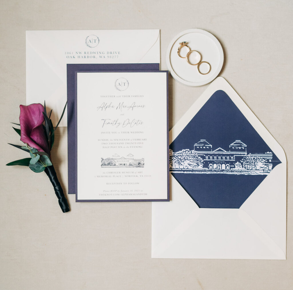 Alpha Mae and Tim’s winter wedding at the Chrysler Museum of Art was a beautiful and timeless wedding. Set within one of Norfolk’s most iconic art spaces, their day felt intentional and perfectly them.